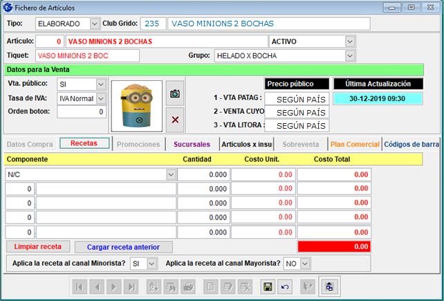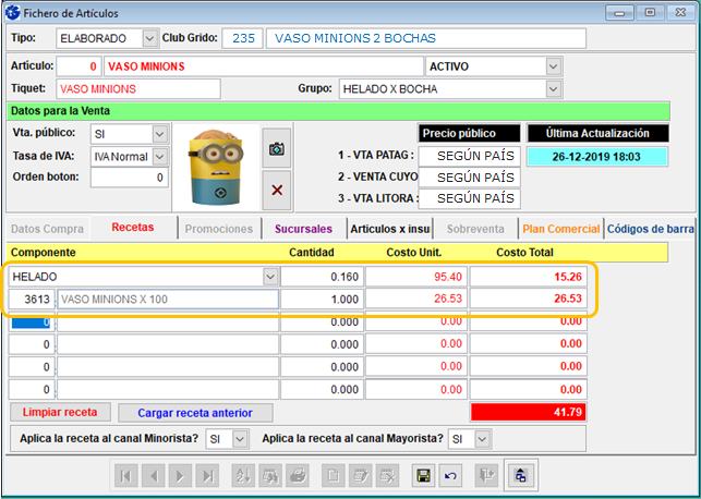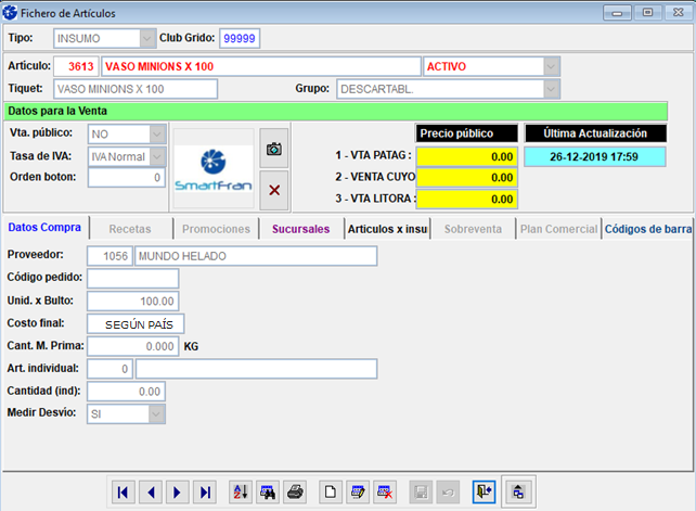 La información debe verse del siguiente modo en su Fichero de Artículos: