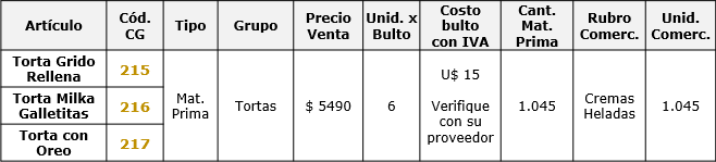 Deben ser configuradas en el Fichero de Artículos con la siguiente información: